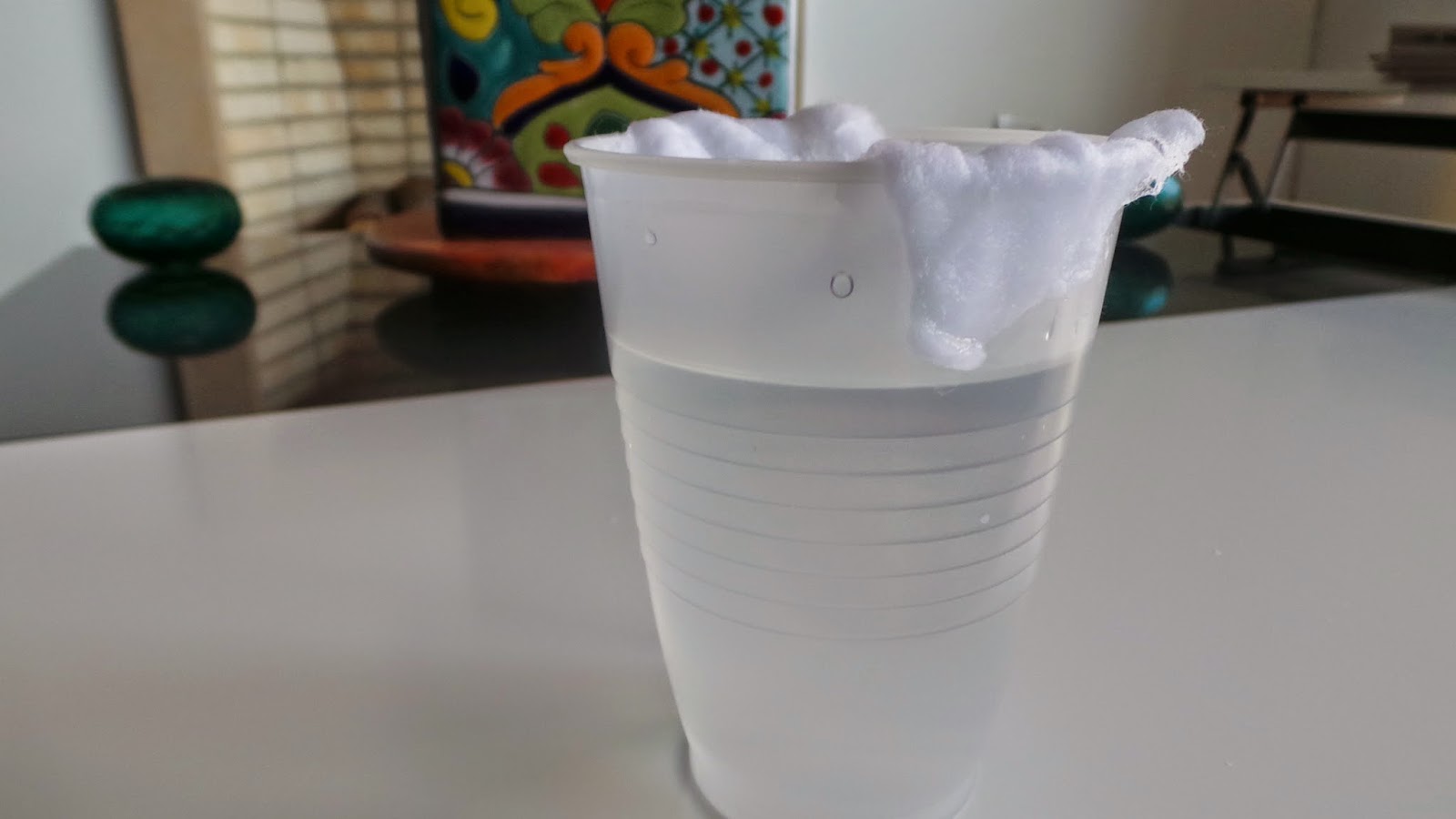 3: Ahora debes conseguir un poco de algodón (El suficiente como para cubrir el inicio del vaso como lo ves en la imágen)