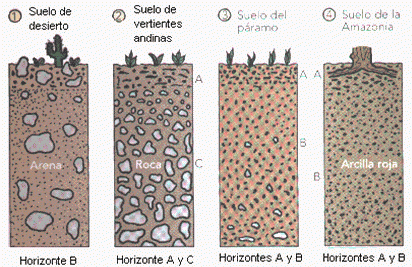 - Una interior: La capa inferior del suelo, que es donde se ubican las rocas, que es la base de la formación del suelo. Debido a la disgregación de sus partículas van surgiendo las capas superiores.